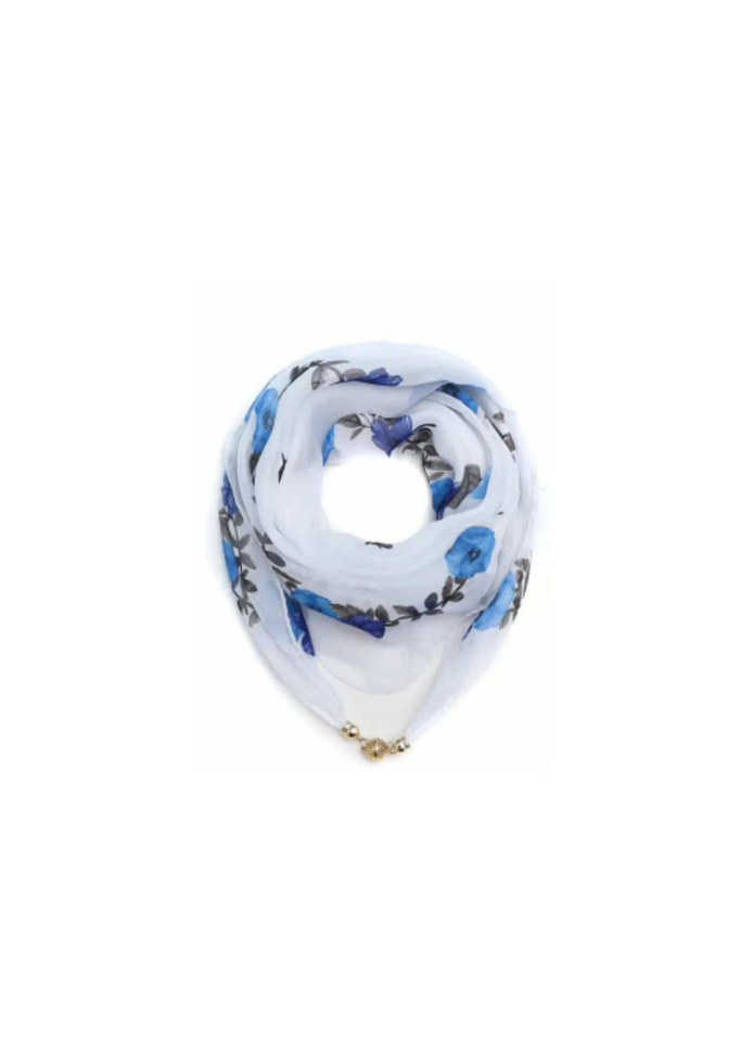 Eleganten ženski šal z magnetnim zapenjanjem - belo modri