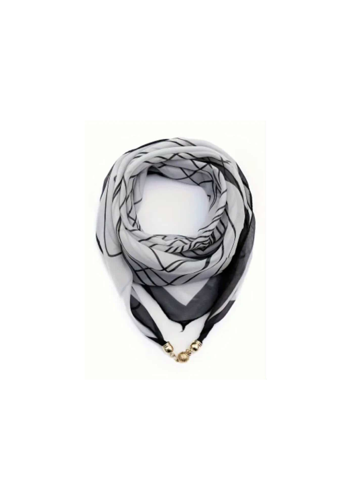 Eleganten ženski šal z magnetnim zapenjanjem - črno beli